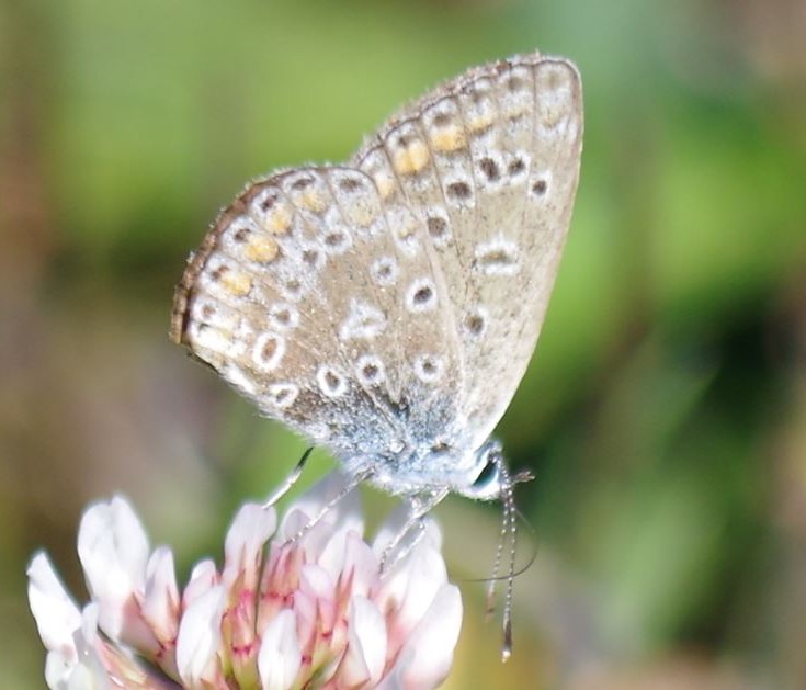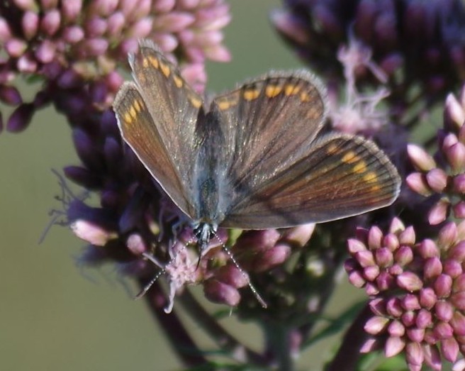 C'est un petit papillon au dessus marron orné d'une ligne submarginale de taches orange et frange blanche.