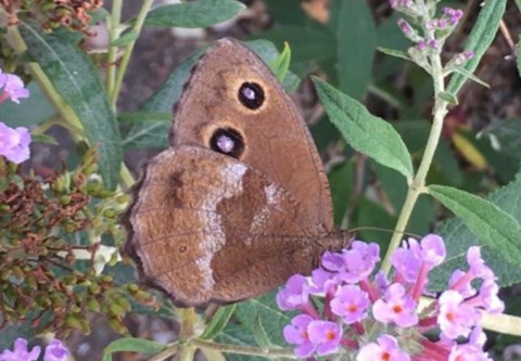• Apparence : le dessus des ailes est brun foncé avec deux ocelles noirs pupillés de bleu clair sur les ailes antérieures, et un petit ocelle noir sur les ailes postérieures. Les ocelles des ailes antérieures sont plus petits chez le mâle que chez la femelle. Le dessous des ailes postérieures est brun jaunâtre avec une zone plus claire au centre.