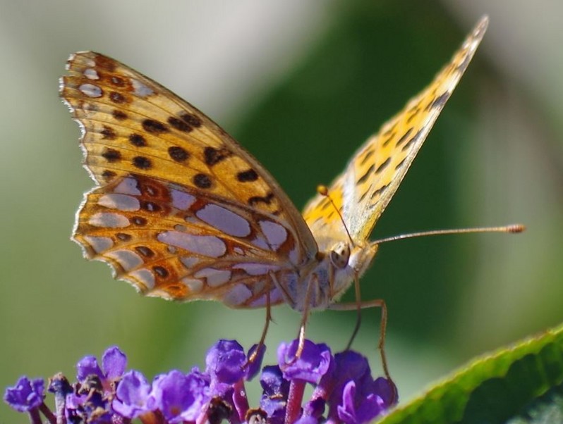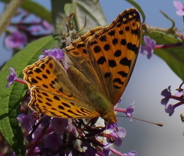 • Apparence : le dessus des ailes est orange avec de nombreuses taches noires arrondies. Le dessous des ailes postérieures porte de nombreuses taches nacrées de grande taille, et sont traversées d'une rangée d'ocelles bruns pupillés de blanc.