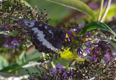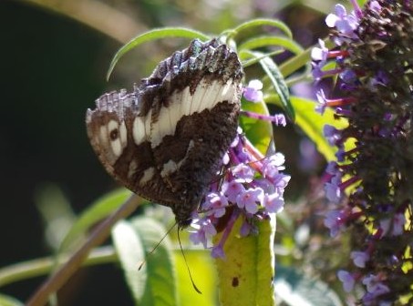• Apparence : la femelle est plus grande que le mâle, mais leur coloration est identique. Le dessus des ailes est noir, avec une bande blanche continue sur les ailes postérieures et discontinue sur les ailes antérieures. Le dessous des ailes est semblable au verso mais nettement plus clair, dans des tons gris-brun. Un petit ocelle est visible sur la première tache blanche des ailes antérieures.