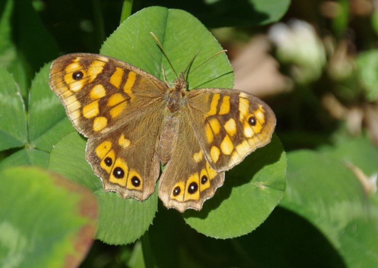 • Apparence : le dessus des ailes présente un fond brun, marqué de multiples taches fauves rappelant un vitrail. Un ocelle noir, à la pupille blanche, se trouve près de l'extrémité de l'aile antérieure, trois autres sont placés en arc sur l'aile postérieure. La couleur de ce papillon varie en fonction des températures au cours de la nymphose : la fraîcheur du climat entraîne une coloration plus sombre. Le dessous des ailes est plus clair, l'aile postérieure est assez terne avec des teintes violacées sur la bordure.
