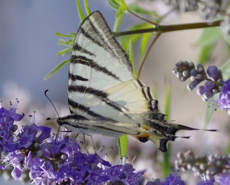 Surtout visibles en avril et en mai, puis en septembre pour la seconde génération, les adultes affectionnent en particulier les fleurs de lavande. En fin de matinée, afin de pouvoir surveiller leur territoire, les mâles se postent sur un promontoire (perchoir, buisson ou sommet d'une butte).Lorsque des mâles de Machaon partagent le même territoire, ils parviennent à cohabiter en séparantleurs espaces de vol, les Machaons volant très bas et les Flambés souvent à plus de 3 m du sol.